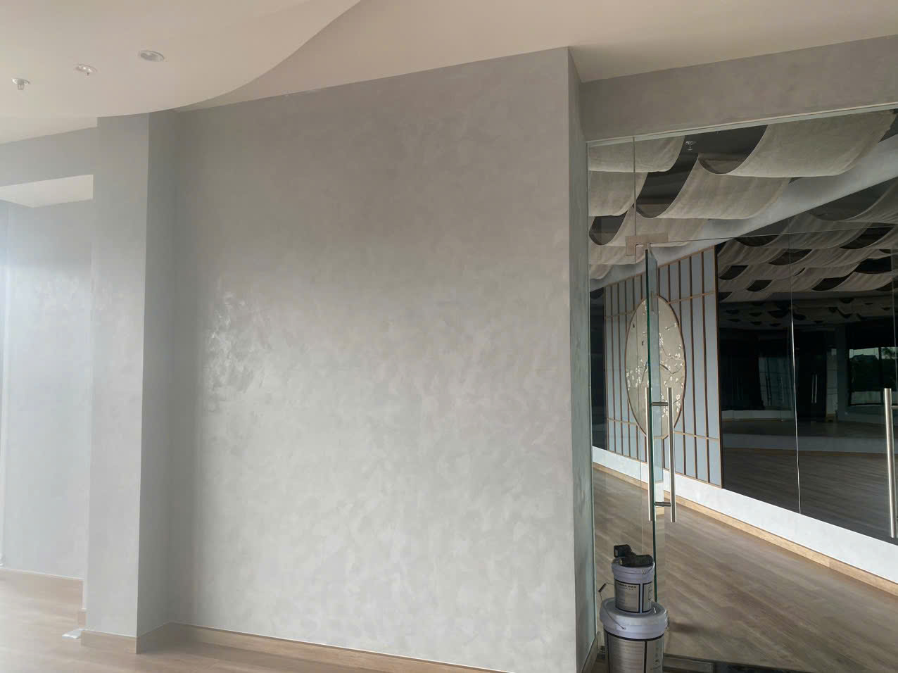 Sau khi chuẩn bị kỹ bề mặt, lớp sơn lót được thi công để tạo nền vững chắc cho sơn hiệu ứng. Lớp sơn này giúp tăng độ bám, chống bong tróc và ngăn ẩm từ bên ngoài. Đồng thời, sơn lót còn làm màu sơn hiệu ứng lên đều và chuẩn hơn, mang lại vẻ đẹp tự nhiên, mịn màng. Việc thi công cẩn thận lớp sơn lót là bước quan trọng quyết định chất lượng và độ bền của toàn bộ công trình.